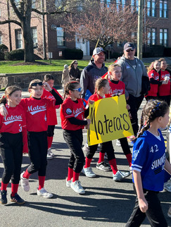 This past Saturday, April 11th, 2026, the Rutherford Little League Baseball Juniors, Majors, AAA, AA, and Tee-Ball teams and the Rutherford Little League Softball Juniors, Majors, and AAA teams proudly held up signs as they participated in the parade. They traveled from Springfield Ave to Diamond 4 at Memorial Field where they all joined together accompanied by Rutherford Fire engines and Rutherford First-Aid ambulances.